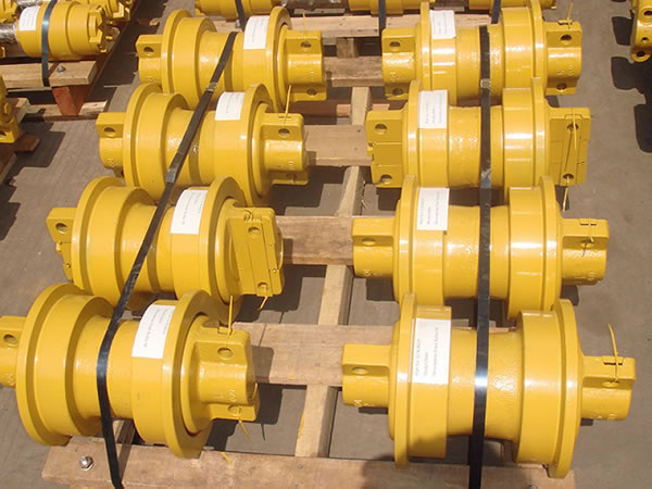 Excavator track rollers are made of the roller body, shaft, collars, bi-metallic bearings and a seal group. They are made using several processes, including forging, machining, heat treatment, assembly, and painting.