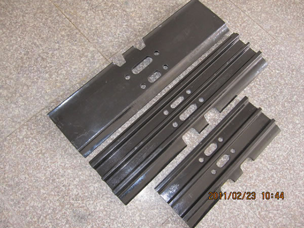 Track shoes (also called track pads or track shoes plates) are metal plates bolted to links in order to provide the contact point between the ground and a track chain, providing traction and flotation in excavators, bulldozers, cranes and drilling machines.