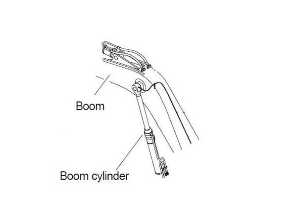 The two ends of the boom cylinder are attached to the boom and the machine body.