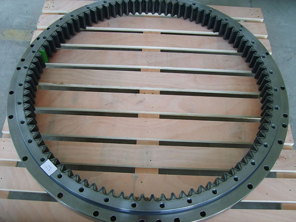 Our swing bearings, also known as slewing bearings are made of 50Mn steel, with a track hardness of 55-62HRC and a teeth hardness of 52-58HRC. We guarantee a one year warranty for each swing bearing.